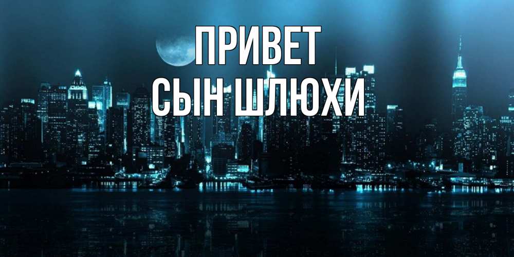 Открытка Привет Сын шлюхи. ночной город и луна. городской пейзаж