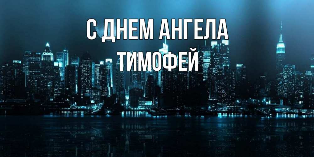 Открытка С днем Ангела Тимофей. ночной город и луна. городской пейзаж