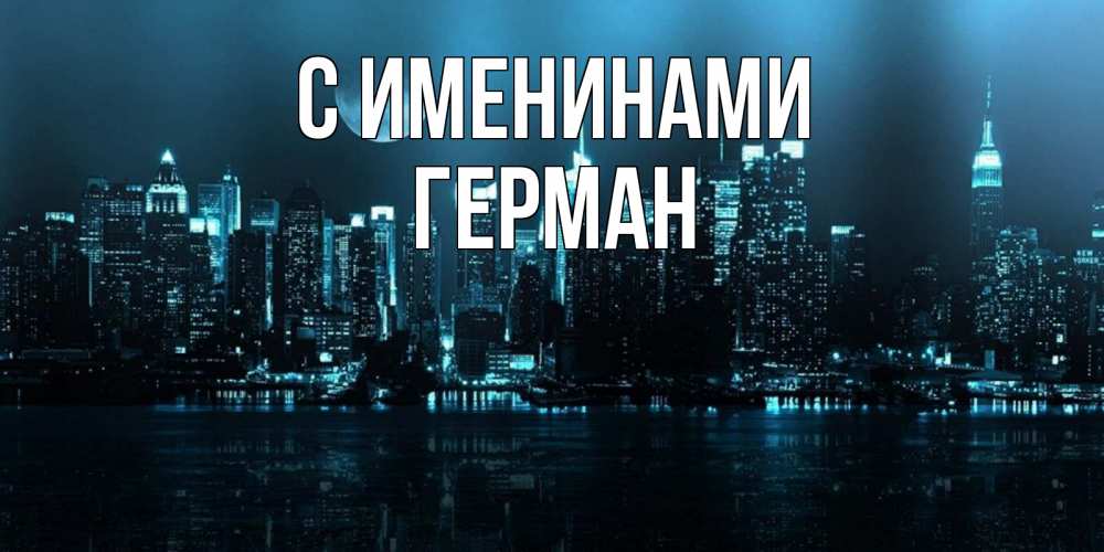 Открытка С именинами Герман. ночной город и луна. городской пейзаж