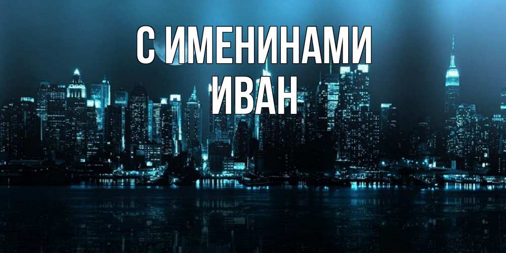 Открытка С именинами Иван. ночной город и луна. городской пейзаж