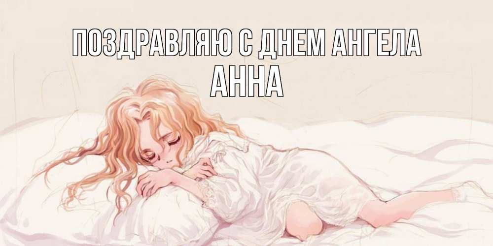 Открытка Поздравляю с днем Ангела Анна. девочка спит в стиле аниме. рыжеволосая девочка в стиле аниме