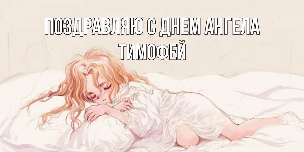 Открытка Поздравляю с днем Ангела Тимофей. девочка спит в стиле аниме. рыжеволосая девочка в стиле аниме