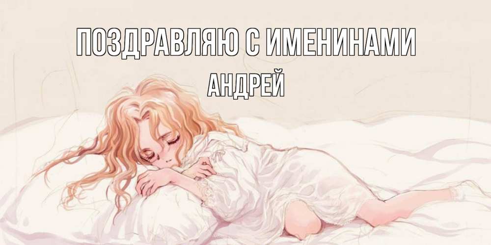 Открытка Поздравляю с именинами Андрей. девочка спит в стиле аниме. рыжеволосая девочка в стиле аниме