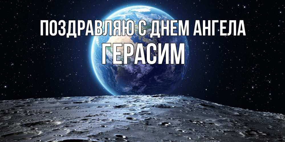 Открытка Поздравляю с днем Ангела Герасим. земля с луны. красивая космическая открытка