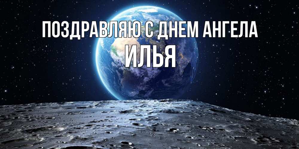 Открытка Поздравляю с днем Ангела Илья. земля с луны. красивая космическая открытка