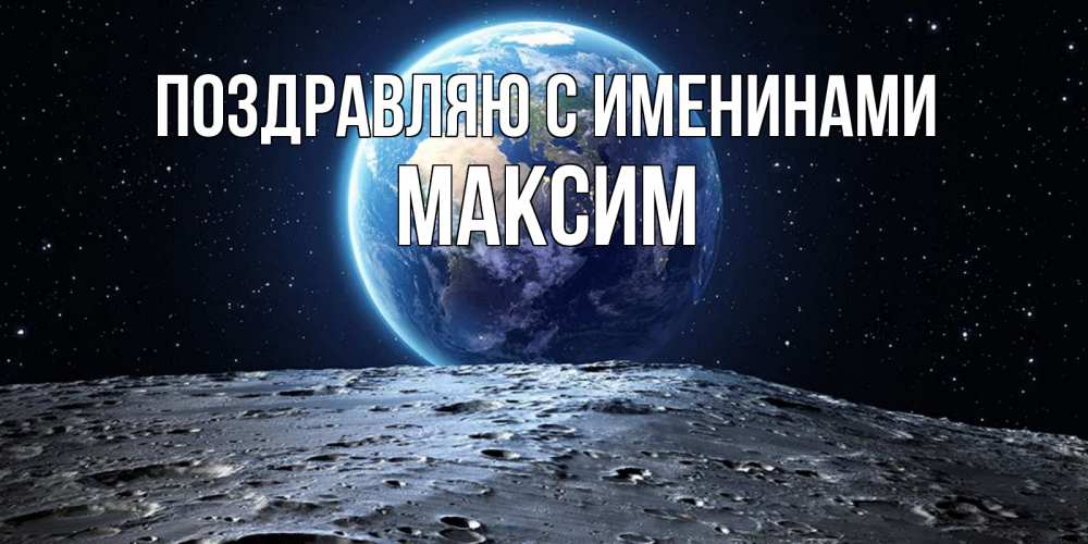 Открытка Поздравляю с именинами Максим. земля с луны. красивая космическая открытка