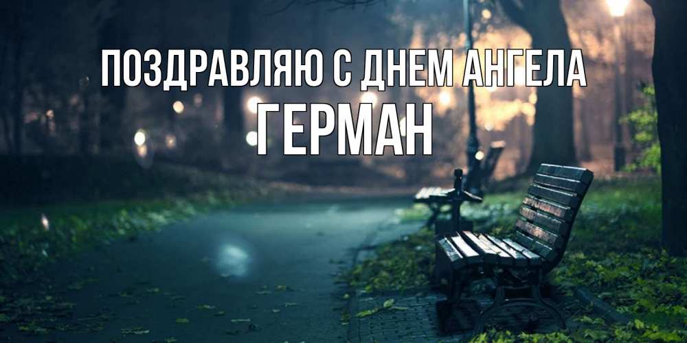 Открытка Поздравляю с днем Ангела Герман. ночная улица с лавочкой. открытка для пожелания сладких снов
