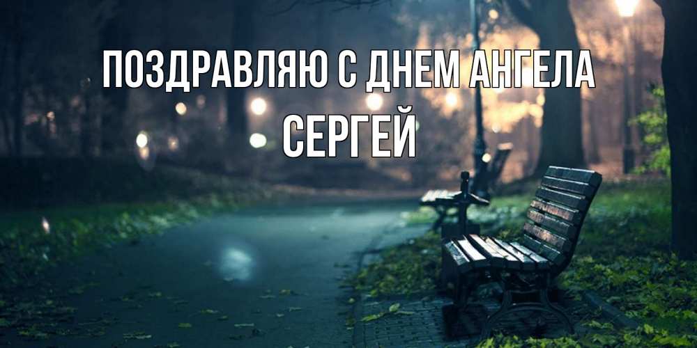 Открытка Поздравляю с днем Ангела Сергей. ночная улица с лавочкой. открытка для пожелания сладких снов