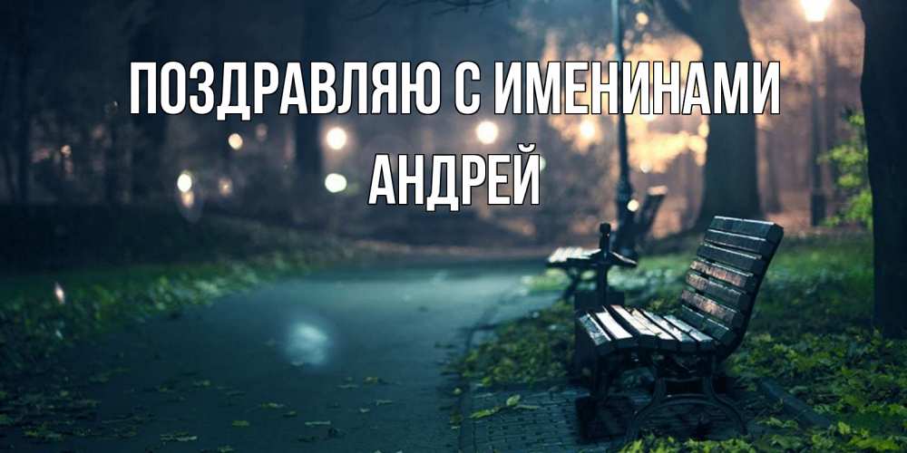 Открытка Поздравляю с именинами Андрей. ночная улица с лавочкой. открытка для пожелания сладких снов