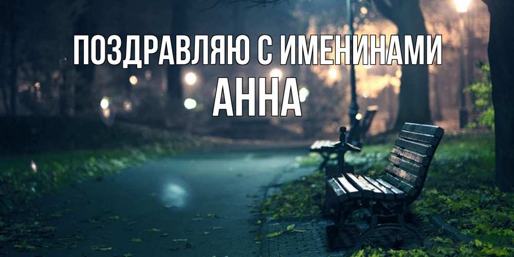 Открытка Поздравляю с именинами Анна. ночная улица с лавочкой. открытка для пожелания сладких снов