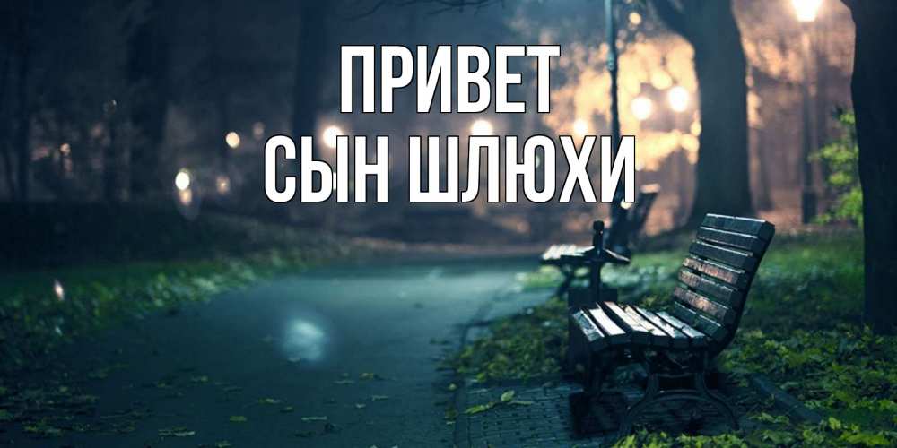 Открытка Привет Сын шлюхи. ночная улица с лавочкой. открытка для пожелания сладких снов