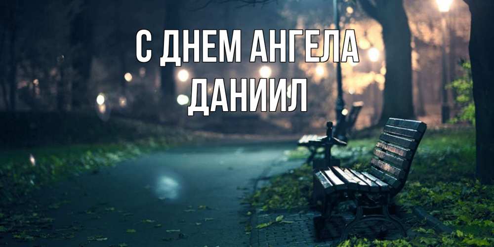 Открытка С днем Ангела Даниил. ночная улица с лавочкой. открытка для пожелания сладких снов