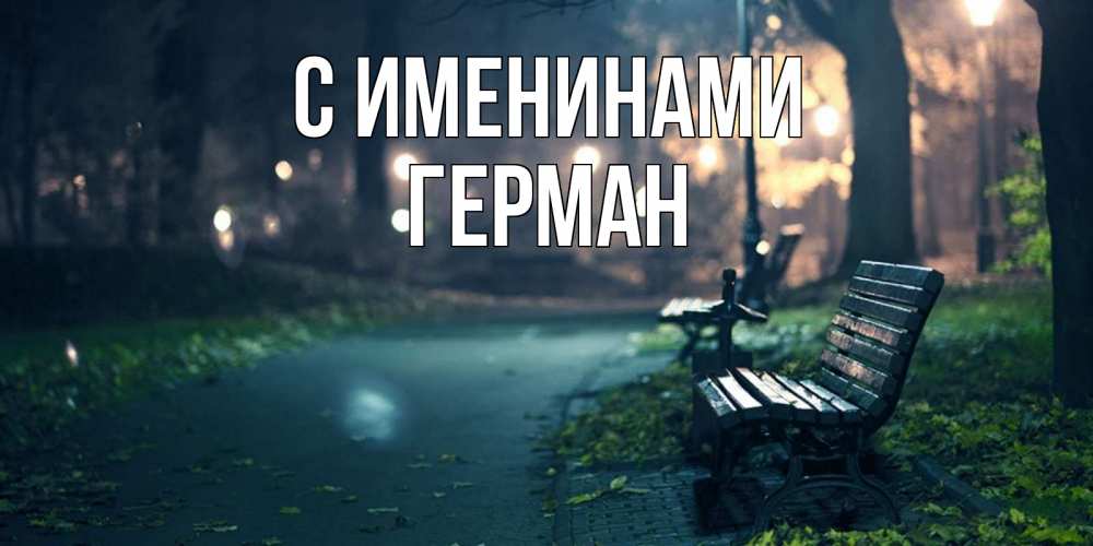 Открытка С именинами Герман. ночная улица с лавочкой. открытка для пожелания сладких снов