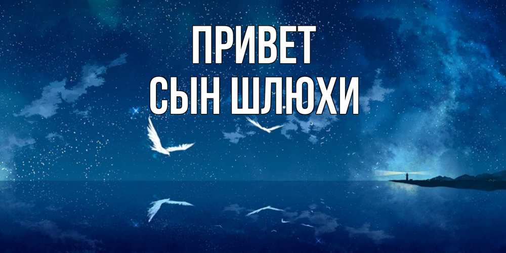 Открытка Привет Сын шлюхи. море маяк и фоны. птицы летят на фоне ночного неба