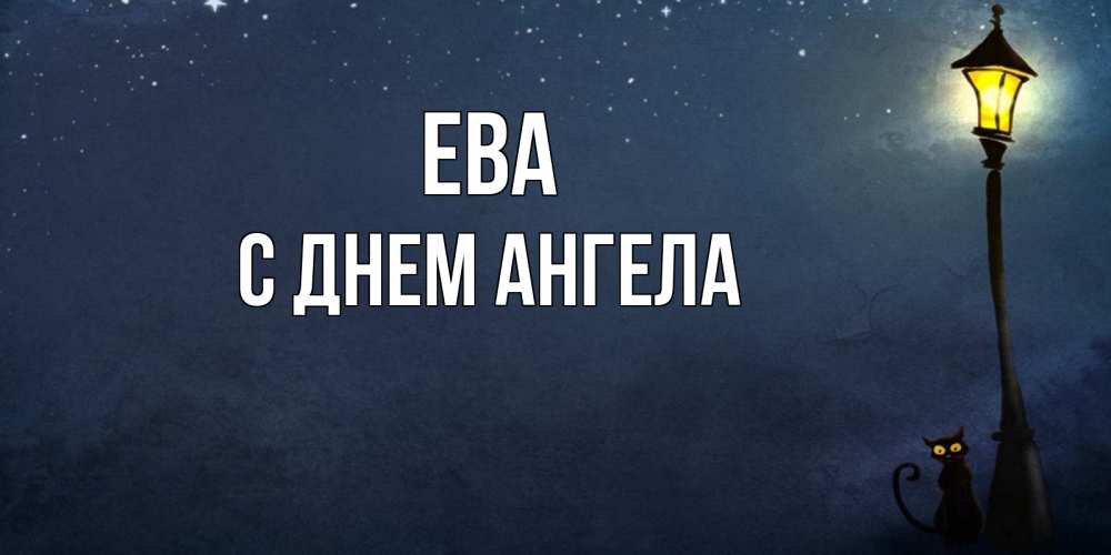 Открытка Ева С днем ангела. фонарь и ночь и котик. желтый фонарь на пустой улице