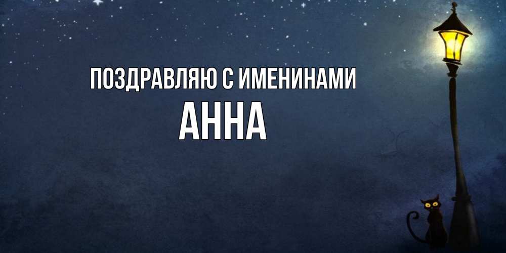 Открытка Поздравляю с именинами Анна. фонарь и ночь и котик. желтый фонарь на пустой улице