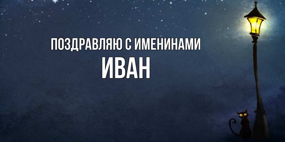 Открытка Поздравляю с именинами Иван. фонарь и ночь и котик. желтый фонарь на пустой улице