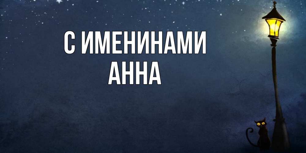 Открытка С именинами Анна. фонарь и ночь и котик. желтый фонарь на пустой улице
