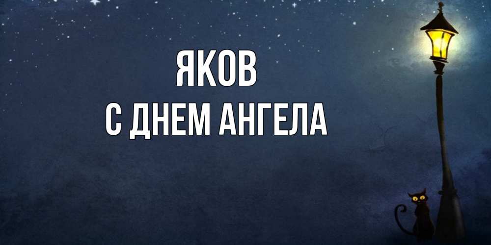 Открытка Яков С днем ангела. фонарь и ночь и котик. желтый фонарь на пустой улице
