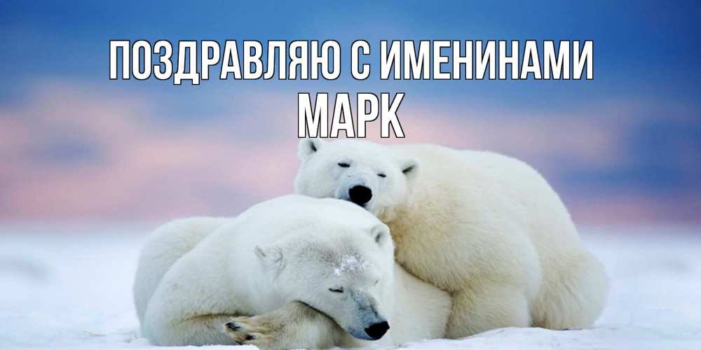 Открытка Поздравляю с именинами Марк. медвежуси. белые медведи спят в обнимку