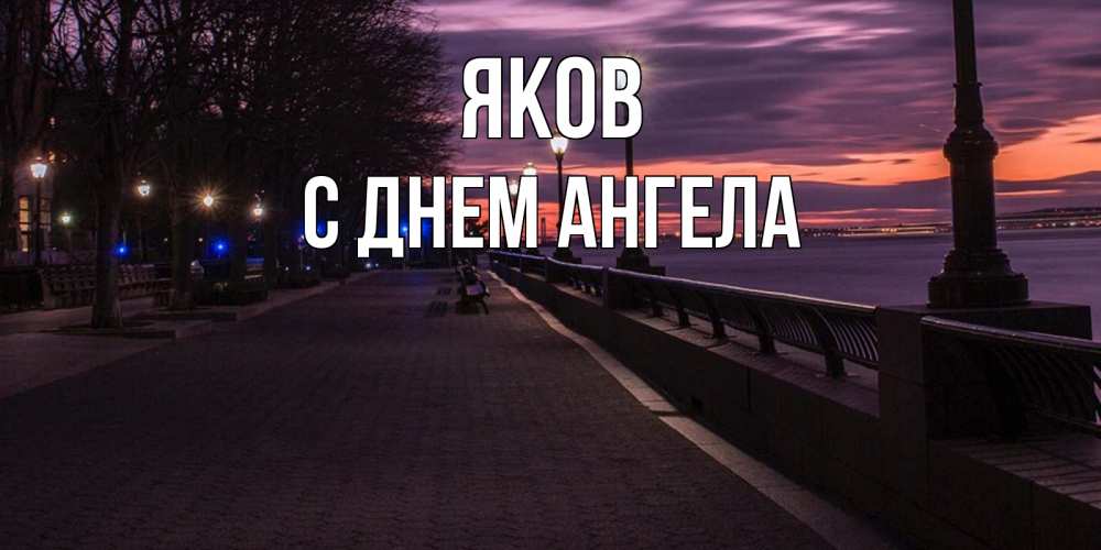 Открытка Яков С днем ангела. ночная набережная. фонари на фоне реки