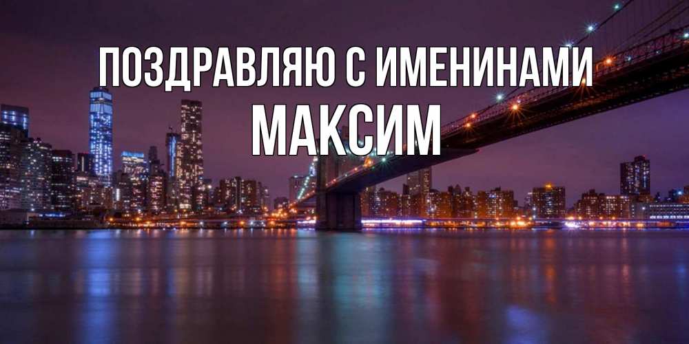 Открытка Поздравляю с именинами Максим. бруклинский мост. ночной мост