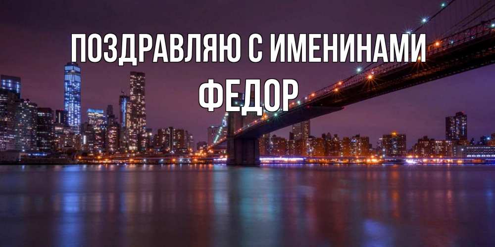 Открытка Поздравляю с именинами Федор. бруклинский мост. ночной мост