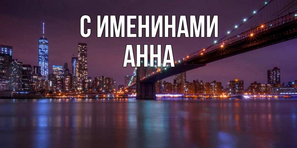 Открытка С именинами Анна. бруклинский мост. ночной мост