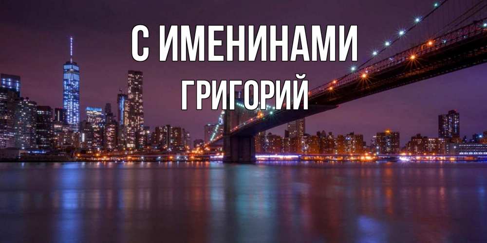 Открытка С именинами Григорий. бруклинский мост. ночной мост