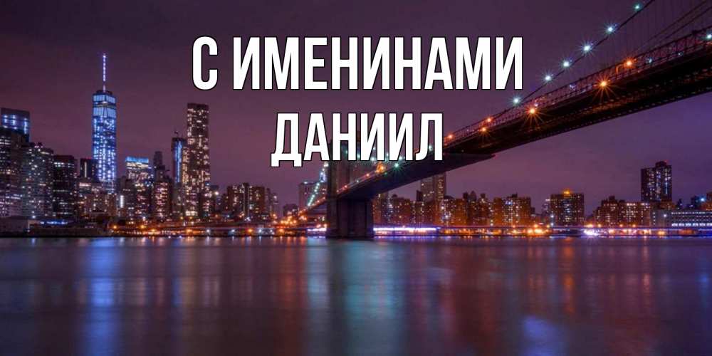 Открытка С именинами Даниил. бруклинский мост. ночной мост