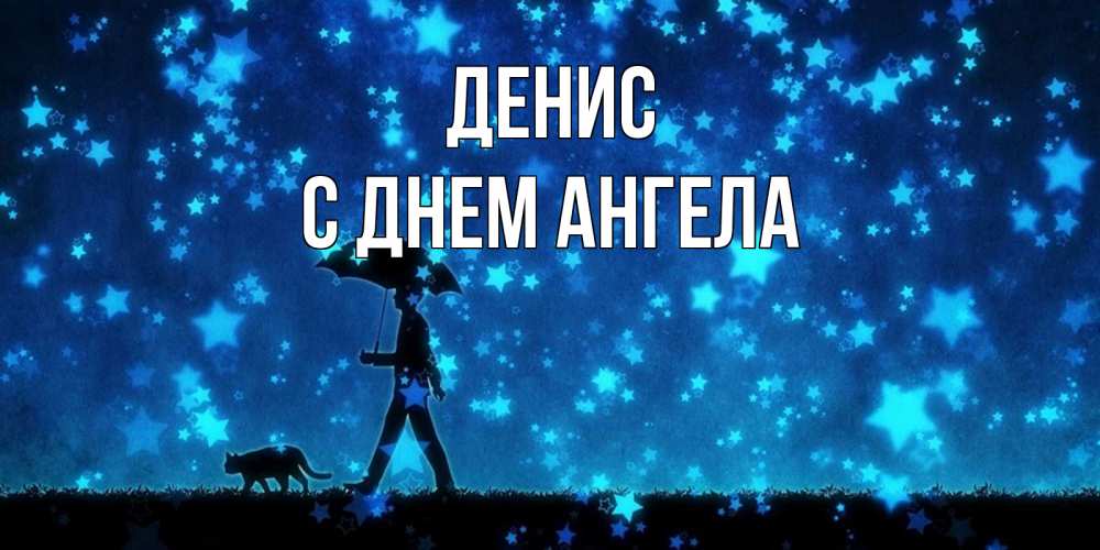 Открытка Денис С днем ангела. прогулка под зонтом. ночные прогулки с котом под звездами