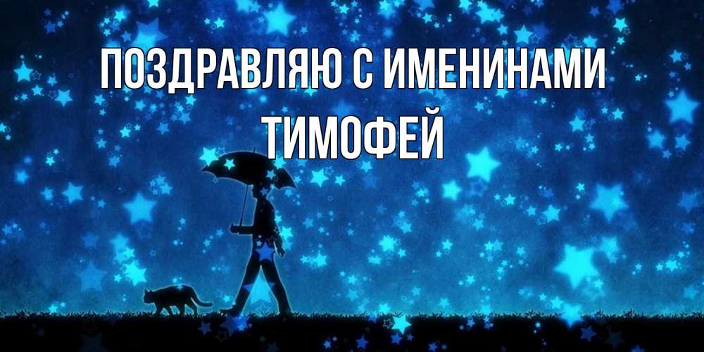 Открытка Поздравляю с именинами Тимофей. прогулка под зонтом. ночные прогулки с котом под звездами