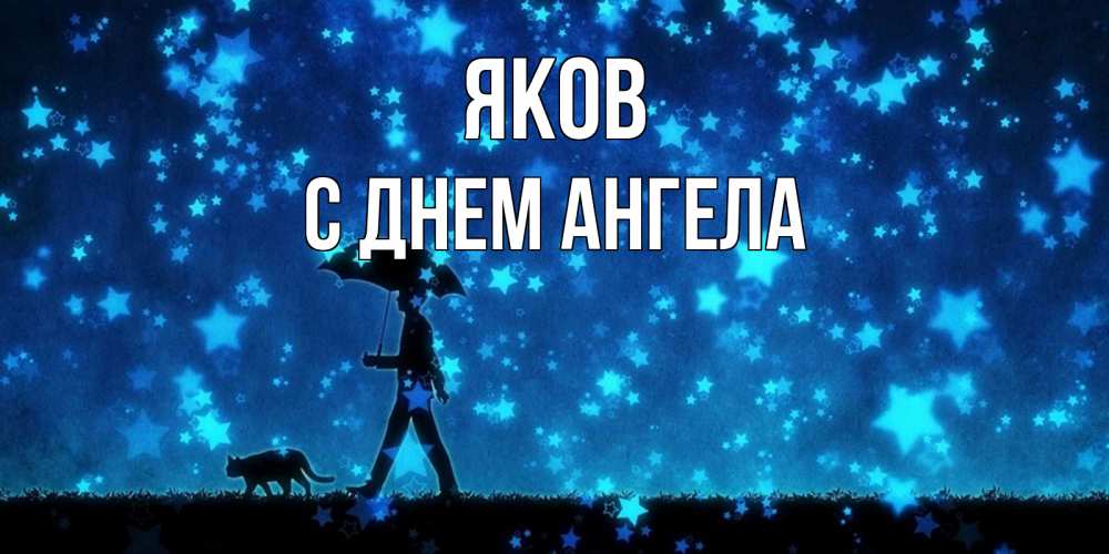 Открытка Яков С днем ангела. прогулка под зонтом. ночные прогулки с котом под звездами