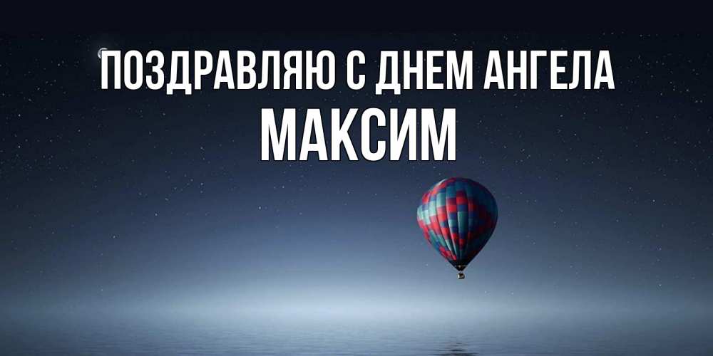 Открытка Поздравляю с днем Ангела Максим. воздушный шар на фоне луны и воды. ночная открытка