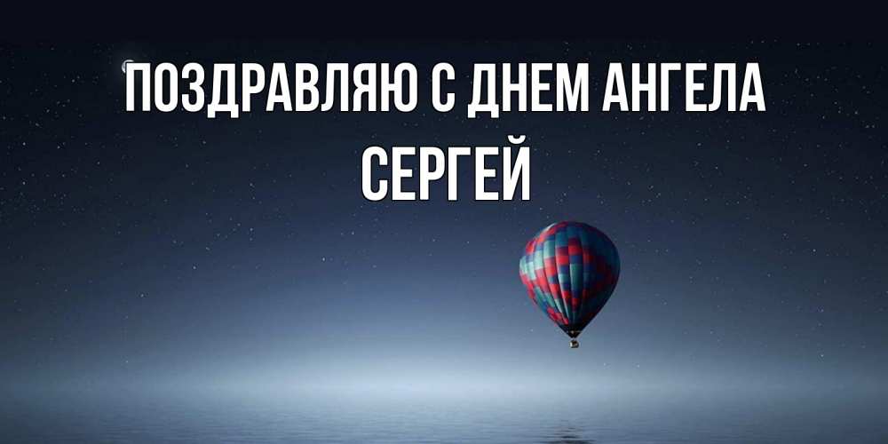 Открытка Поздравляю с днем Ангела Сергей. воздушный шар на фоне луны и воды. ночная открытка