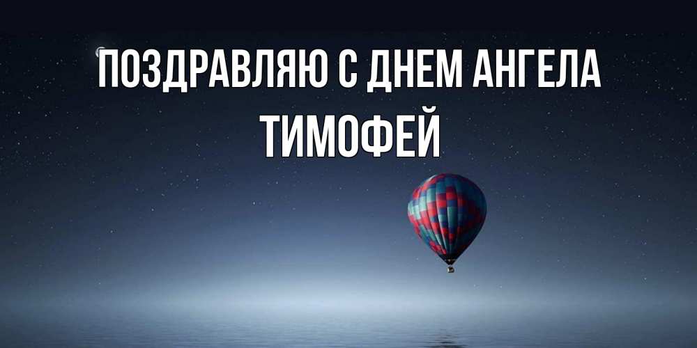 Открытка Поздравляю с днем Ангела Тимофей. воздушный шар на фоне луны и воды. ночная открытка