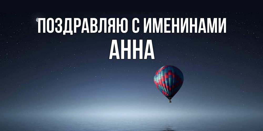 Открытка Поздравляю с именинами Анна. воздушный шар на фоне луны и воды. ночная открытка