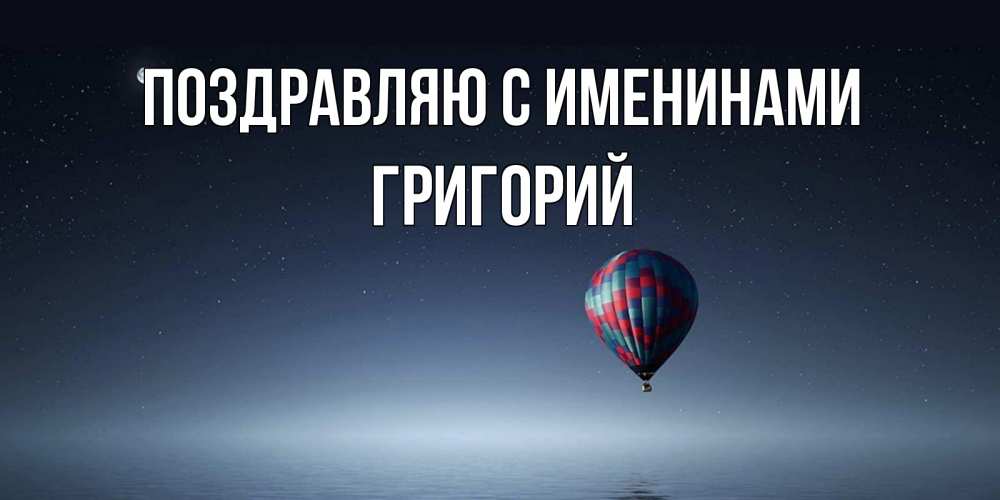 Открытка Поздравляю с именинами Григорий. воздушный шар на фоне луны и воды. ночная открытка