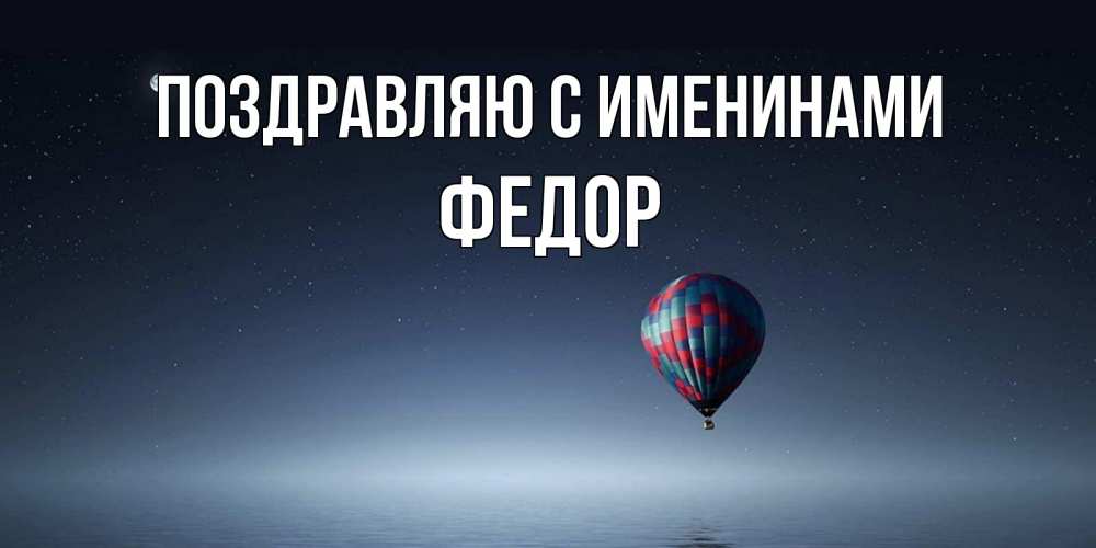 Открытка Поздравляю с именинами Федор. воздушный шар на фоне луны и воды. ночная открытка