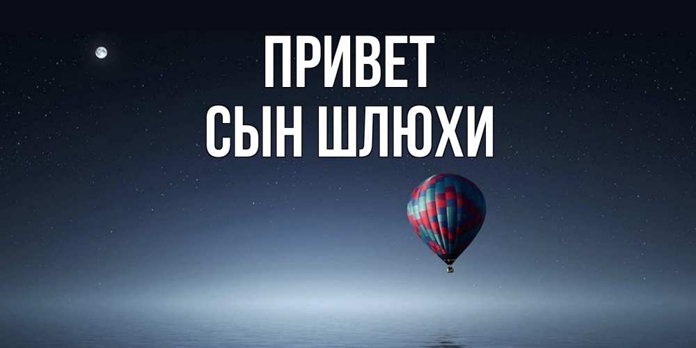 Открытка Привет Сын шлюхи. воздушный шар на фоне луны и воды. ночная открытка