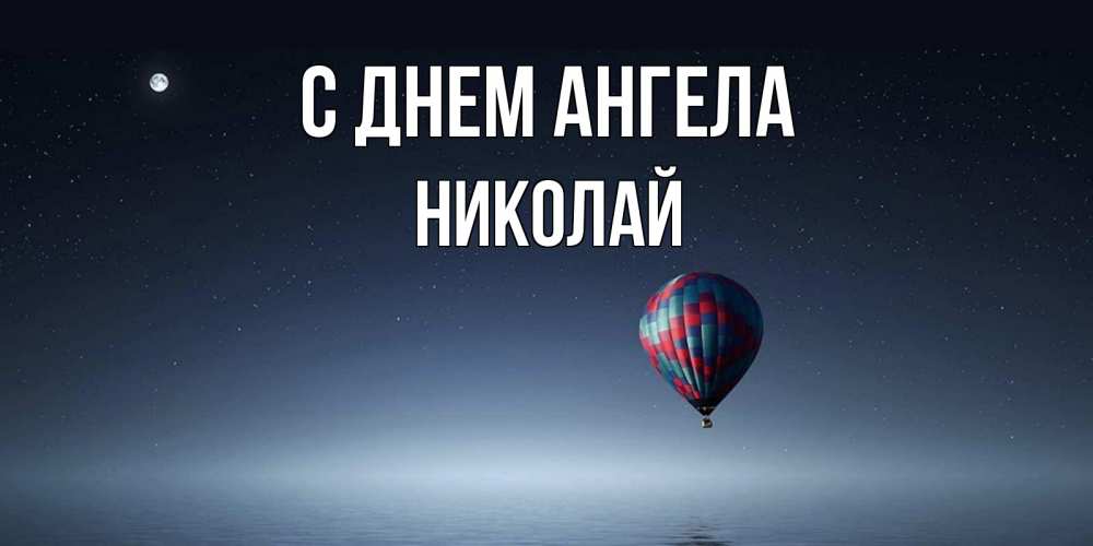 Открытка С днем Ангела Николай. воздушный шар на фоне луны и воды. ночная открытка