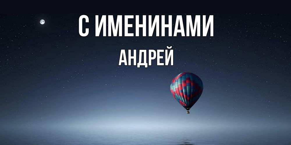 Открытка С именинами Андрей. воздушный шар на фоне луны и воды. ночная открытка