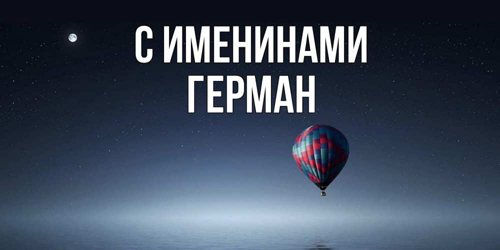 Открытка С именинами Герман. воздушный шар на фоне луны и воды. ночная открытка