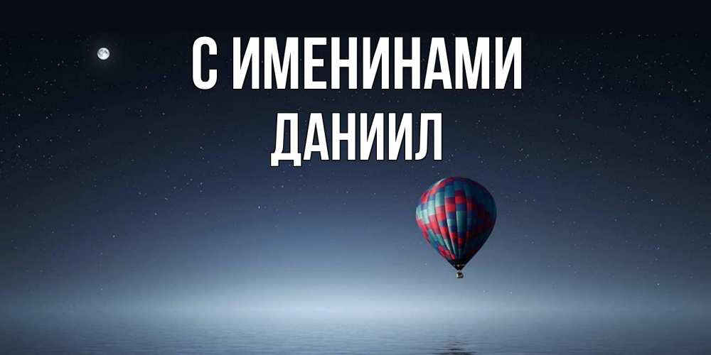 Открытка С именинами Даниил. воздушный шар на фоне луны и воды. ночная открытка