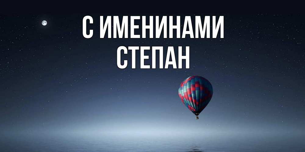 Открытка С именинами Степан. воздушный шар на фоне луны и воды. ночная открытка