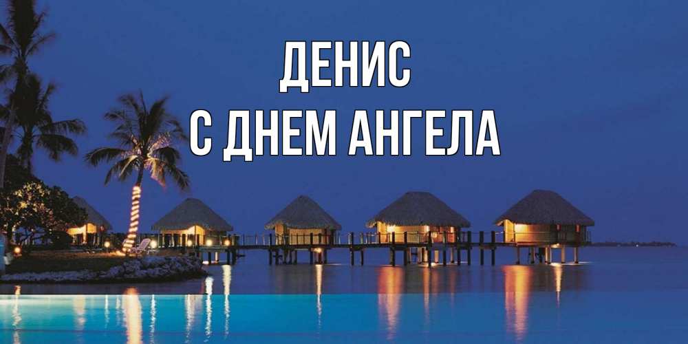 Открытка Денис С днем ангела. бунгалло на море. морское пожелание сладких снов
