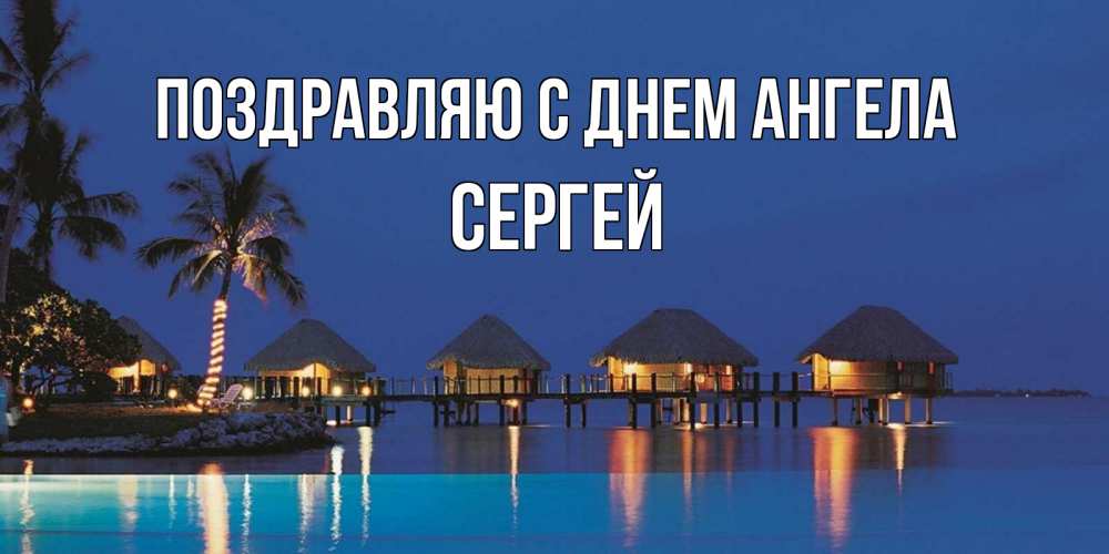 Открытка Поздравляю с днем Ангела Сергей. бунгалло на море. морское пожелание сладких снов
