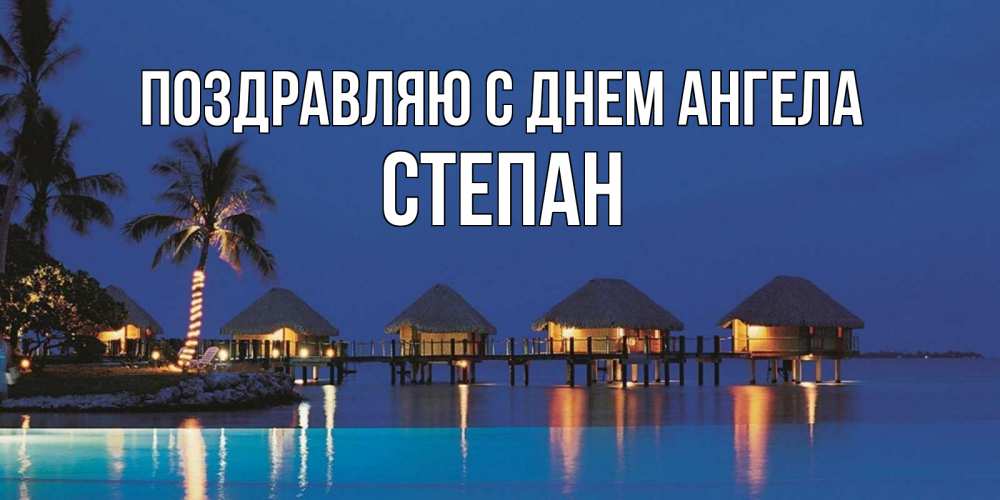 Открытка Поздравляю с днем Ангела Степан. бунгалло на море. морское пожелание сладких снов