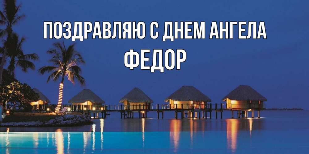 Открытка Поздравляю с днем Ангела Федор. бунгалло на море. морское пожелание сладких снов
