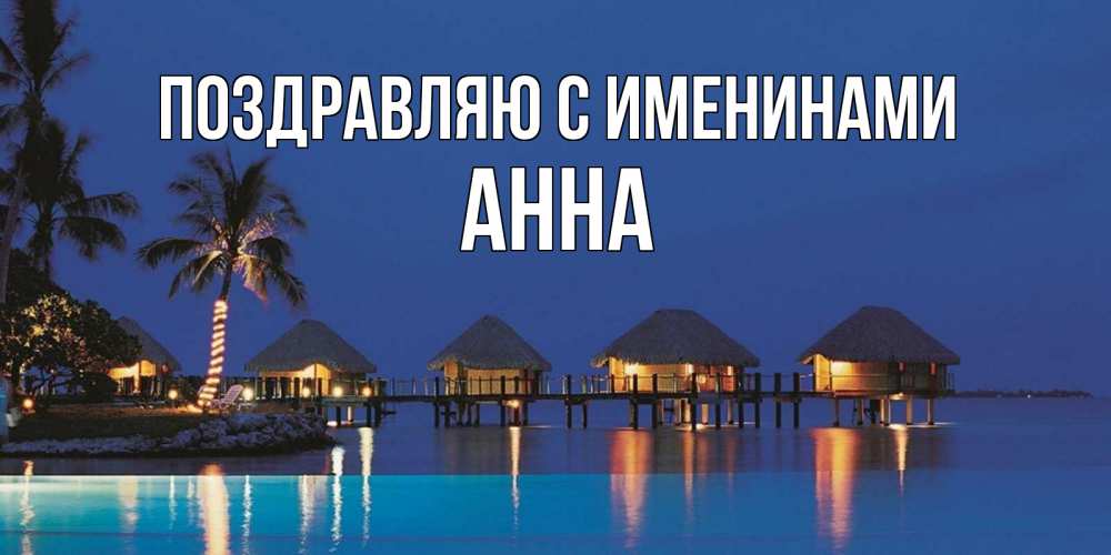 Открытка Поздравляю с именинами Анна. бунгалло на море. морское пожелание сладких снов